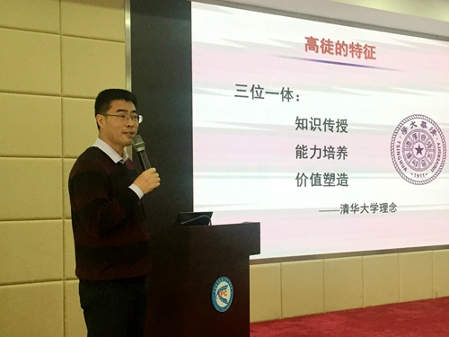 清华大学航空航天学院曹炳阳教授做了《“?”师出高徒》的报告,讲述了自己对“什么样的导师才能出高徒”的理解。他表示“严”、“研”、“颜”、“宴”相结合的培养方式,对于学生培养成才十分重要。