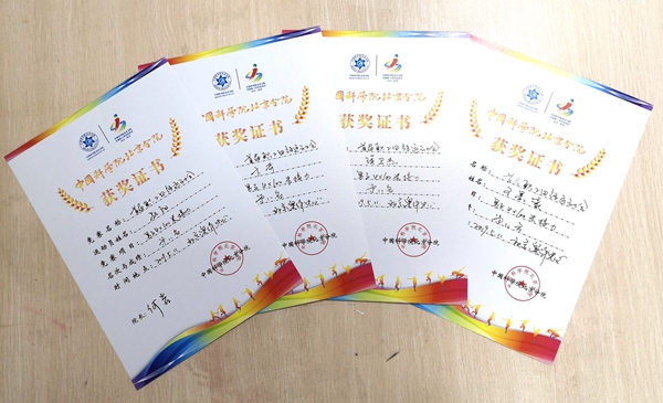 理化所的团体成绩也不容忽视,由张梅英、张雪平、张欣庄、张晓彤、王格侠、王萍丽、张磊、李樾、李东辉、王浩辰、李旭和姚晓宇组成的团队,在8字跳绳的比赛获得了团体第四名的好成绩;由赵阳、张卫杰、卞奇、王景豪组成的理化所代表队在男子4×100米接力中获得第八名,集体项目的获奖为理化所增加了双倍的积分。在大家的共同努力下,理化所最终以1金3银2铜,两个第四名,4个第八名的好成绩,赢得北京分院第10名的优良战绩,获得优秀组织奖的光荣称号。