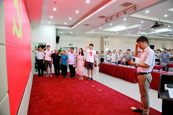 会议在雄壮的国歌声中正式开始。新党员走上讲台,在王越超书记的带领下,面向巨幅鲜艳的党旗郑重宣誓。在场全体老党员起立,庄严地举起右手,重温入党誓词。“为共产主义奋斗终身,随时准备为党和人民牺牲一切,永不叛党”的誓言再次响起,激荡着在场每位共产党员的心房。