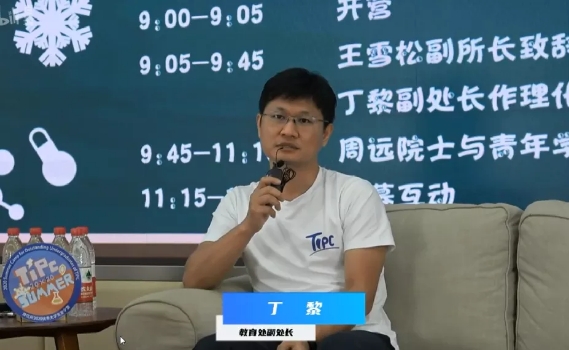 王雪松副所长表达了对全体夏令营营员的祝福,祝愿大家学业有成、前程似锦,也向教育处和参加夏令营筹备的工作人员表示了感谢,最后用了两个“最”总结了这次夏令营的特点:“这是我们历史上时间最短的夏令营,也是我们相聚最远的一次夏令营。但我希望通过四天丰富而充实的线上活动,大家能够充分了解理化所,能够感受到理化所老师和师兄师姐对你们的热烈欢迎,以及对你们的期许和祝福。”