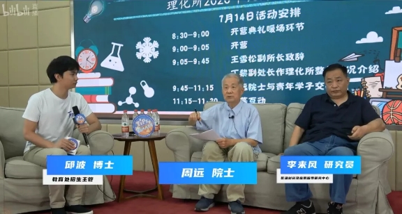 随后,周远院士与李来风研究员做客直播间,与夏令营营员互动交流。周远院士分享了他关于科研工作的体会以及为人治学的经验,鼓励青年学子敢想敢干、勇于创新、不畏困难、勇往直前。交流会最后,周远院士鼓励大家:“青年学子要求真务实,一心一意做好一件事,要有创新精神。”