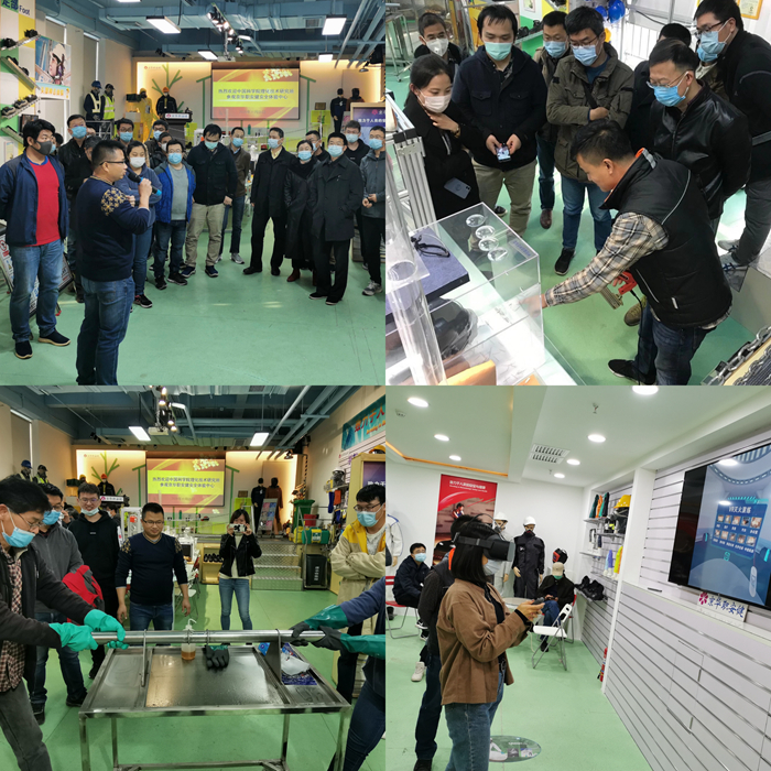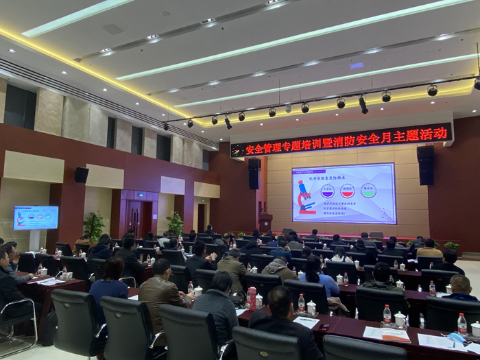 为提高安全事故防范和应急处突能力,培训会在廊坊所区开展了危险化学品泄漏应急演练,以未知液体、浓硫酸液态试剂、氯化铵固体药品泄漏为例,创造性地将案例讨论模式带入到活动中。三组人员分别实际参与应急响应,自主设计操作步骤,实验室的画面通过直播的方式与报告厅内互动,参会人员、观察员就处置过程中发现的问题进行了充分交流和讨论,并全员提交安全知识竞赛答卷。另外,培训会还组织了园区微型消防站拉练,并邀请廊坊市开发区消防大队到场共同进行消防演习。