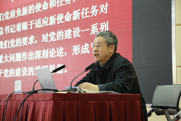 在专家讲党课环节,全国党建研究会特邀研究员陈东平作《习近平总书记党的建设思想研究》报告,系统讲解了习近平总书记党建思想形成的时代背景、丰富内涵、鲜明特征、理论意义、实践意义,让各位同志整体了解习近平总书记党的建设思想的主体脉络。