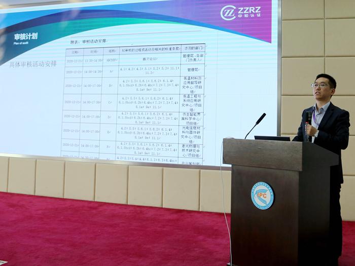 《科研组织知识产权管理规范》(GB/T 33250-2016)由国家知识产权局、中国科学院、中国标准化研究院共同起草,于2017年1月1日正式颁布实施。2018年,中科院正式启动院属单位《科研组织知识产权管理规范》贯标工作,理化所为要求首批通过该国家标准认证的32家研究所之一。自2018年12月,理化所成立知识产权贯标领导小组,正式启动贯标工作。全所积极行动,经过调查诊断、体系策划、文件编写、反复征询意见等系列工作,于2020年9月15日正式签发《理化所知识产权管理手册》。理化所知识产权管理体系经过3个月试运行、内部审核、管理评审,于2020年12月21日至22日完成现场认证审核工作。审核组充分肯定了理化所超出体系标准要求的若干知识产权培育及转化工作,并为管理体系持续改进提出建议。