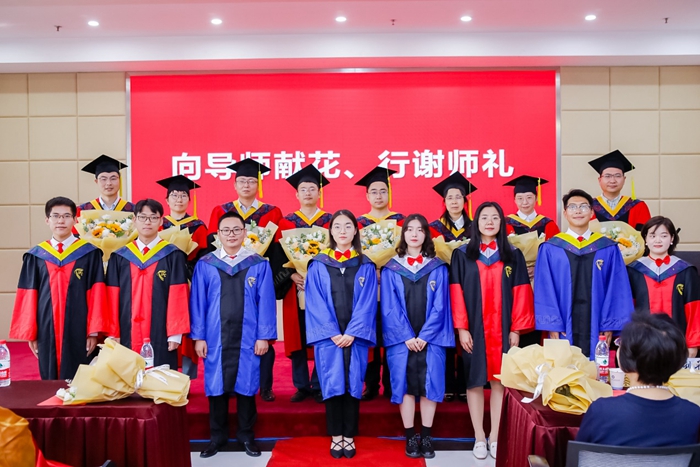 离别之际,毕业生代表向现场导师献花并鞠躬行谢师礼。感谢导师们的一路指引与帮助,让学生们成长为更好的自己。