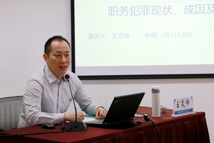 王文帅副主任首先作了题为《高校、科研院所职务犯罪现状、成因及防治对策研究》的报告,报告从高校、科研院所当前的职务犯罪现状讲起,结合大量鲜活的案例,讲述了职务犯罪的四种主要形式及频发领域,重点讲述了科研人员侵蚀科研经费的主要形式和特点。通过案例深入剖析了职务犯罪的频发原因,涉及心理失衡、法律意识淡薄等因素。报告提出,要从加强科研经费顶层制度设计、建立健全监督制约机制建设、提升科研人员的法律素养和规矩意识等三个方面着手,预防职务犯罪发生。报告为理化所的领导干部上了一堂生动的警示教育课,也指出了监督执纪工作的关注重点。