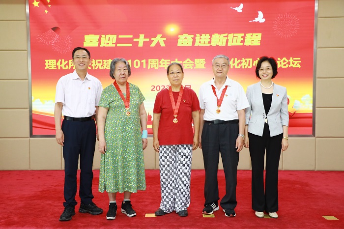第一部分的庆祝建党101周年大会由理化所党委副书记刘新建主持。首先举行“光荣在党50周年”纪念章颁发仪式,张丽萍书记向老党员颁发“光荣在党50周年”纪念章。自党中央2021年首次颁发纪念章以来,理化所共有63位老同志获此殊荣。