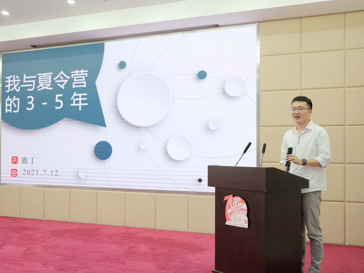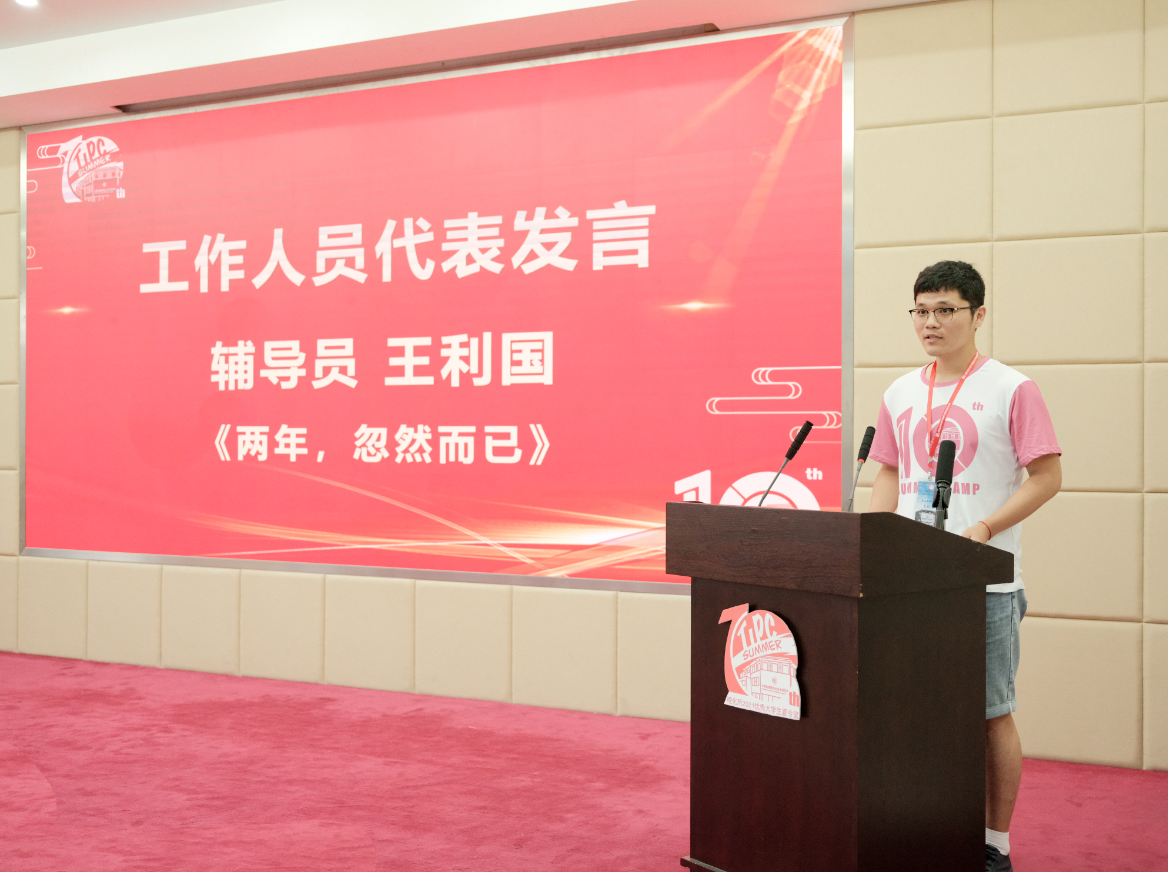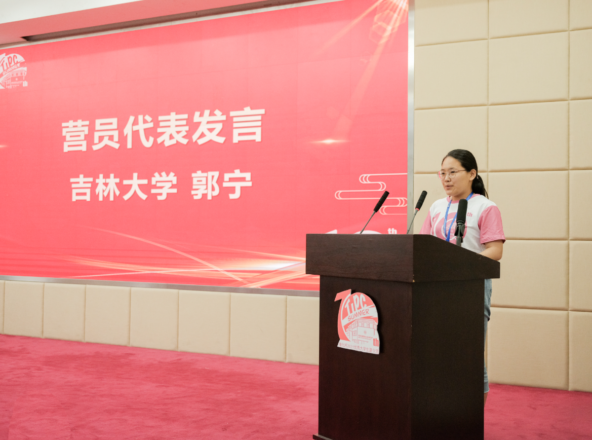 工作人员代表第五组辅导员谭君蕊带我们回忆了过去几天共同经历的点点滴滴,也抒发了对营员们的热切期盼:“第十年的你们热烈、真诚,让夏令营永远青春。如果有幸,我们非常愿意成为大家日后科研奋斗路上的同伴,为国家需求,为国民经济发展,为人类命运共同体,击水而上,贡献潮头一浪。”