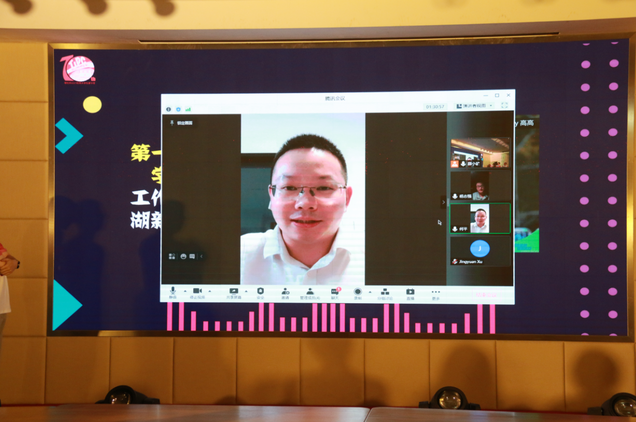 讲话结束后,夏令营全体工作人员与营员们共同欣赏精心制作的闭营视频《理化之邀,共赴十年》。视频以主人公颜利国赴夏令营十年之约的独特构思,带我们回顾了本届夏令营的各项精彩活动;辅导员们在视频中畅谈夏令营期间的体悟,表达对营员们的美好祝愿。典礼最后,在邱波老师的提议下,夏令营活动组和宣传组的成员们从幕后走到台前,与大家分享了夏令营期间的工作内容和心路历程,感谢这个夏天能遇见每一位可爱的小伙伴。