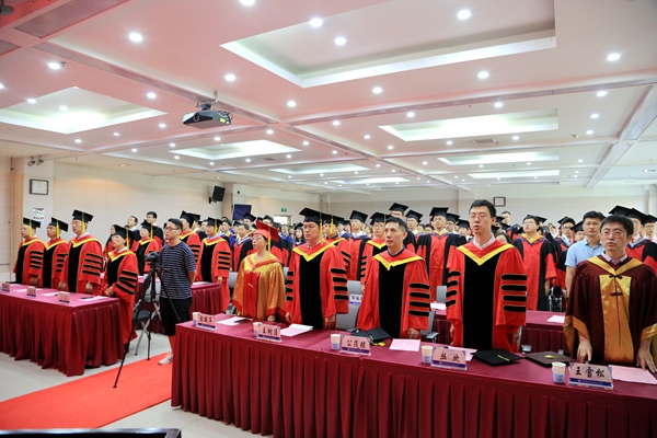 毕业典礼在庄严的国歌声中开始