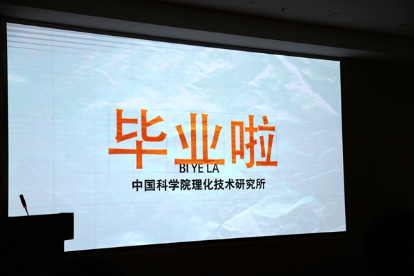 罗晓宇同学代表全体硕士毕业生发言。她认为理化所是一个科研院所,更是一个有爱的大家庭,让每一个理化人感受到家一般的温暖。冬天洗手池温暖的水,洗手台上贴心的护手霜、梳子,无不彰显着理化所对大家生活上无微不至的关怀。她分享了自己在理化所生活的点滴,表达了对领导、老师的感激之情和对同学、朋友的不舍之情。