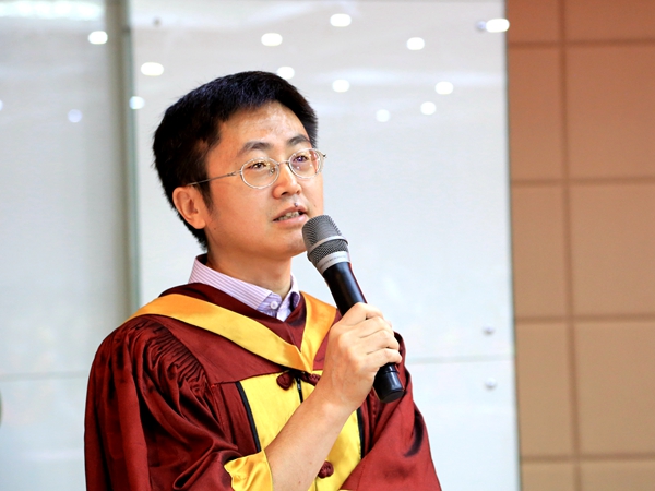 导师代表王树涛研究员通过讲述自己的科研和工作经历,表达了对毕业生的关怀、勉励和期盼。在离别之际,他对即将踏入社会的毕业生悉心叮嘱:一是勉励毕业生要保持阅读和学习的习惯,摄取新的知识是每个人一生都需要的;二是期望毕业生像“锂电池”一样,完成了多年的求学“充电”过程,毕业后进入“放电”过程,要对社会作出自己的贡献,同时要不断“充电”,从而不断完善、,提高自己;三是以所训“自强、务实、和谐、创新”勉励毕业生,希望这八个字伴随着毕业生走向更远的道路。最后,王树涛研究员为毕业生送上诚挚的祝福,愿毕业生一切顺利,拥有精彩的人生。