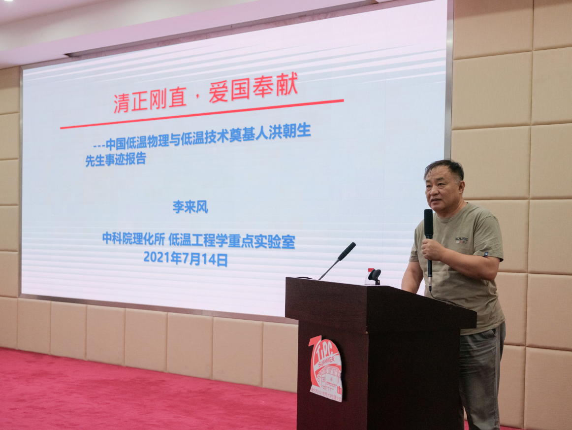 弘扬科学家精神主题报告环节是本届十周年夏令营的特色活动之一,李来风研究员首先为营员带来“清正刚直、爱国奉献”——中国低温物理与低温技术奠基人洪朝生先生事迹报告,李来风研究员以其与洪先生亲身接触的经历和相关历史资料为基础,将低温物理、低温技术奠基人洪朝生先生的一生向我们娓娓道来,洪朝生先生具有强烈的爱国热情和责任感,对待科研事业兢兢业业,富于创新精神;他不慕名利,为人低调,让人心生敬重。报告最后,李来风研究员用洪先生的话勉励大家——“不要刻意追求名和利,专心做自己喜欢的事”,营员们备受鼓舞。严开祺老师分享了“青春惟奋斗”——个人成长经历报告。严开祺老师阐述了固体浮力材料的研发及应用研究过程,历经二十年的攻坚克难,严老师课题组研发出了以空心玻璃微球为核心材料的固体浮力材料,并成功应用到深海潜水器、航天飞行隔热等领域上,实现了从零到世界先进的突破,报告最后,严老师希望营员们能学习中国载人深潜精神——严谨求实,团结协作,拼搏奉献,勇攀高峰。