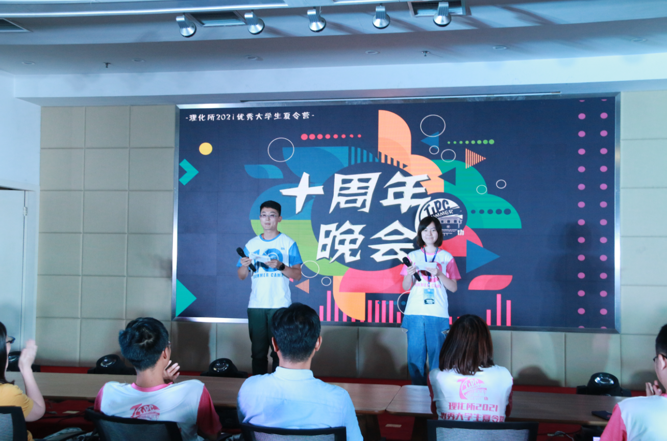 7月16日晚,理化所夏令营十周年晚会在1号楼407室举行,教育处丁黎副处长、张谨老师、代丹老师、陈晨老师和邱波老师出席晚会,与同学们共享文艺盛宴。本次晚会中,历届夏令营学生总负责人或来到晚会现场、或通过远程连线与营员们分享了过去参与夏令营筹备工作的体会,为夏令营十周年送上祝福,祝愿营员们在这个夏天有所收获。“我很怀念一起筹备夏令营的时光;很欣慰多年来理化所夏令营在传承经典的同时不断创新,如今已成为一项精彩的活动。”“感谢理化所教育处团队十年如一日的付出,坚持做一件事情做十年不容易。”“希望大家能享受和珍惜在夏令营的时光;遇见理化所,遇见未来不可思议的自己。”眷念、感恩、期盼,这三种感情贯穿于前辈们的谆谆言语中。因为坚守,理化所夏令营让感动发生在十年里的每一夏邂逅。