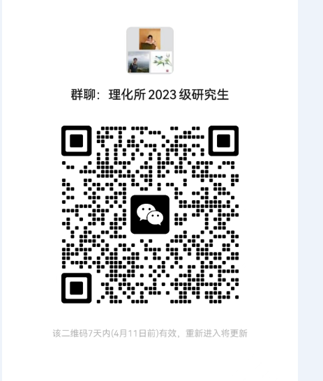 另外,请加入“理化所2023级研究生”微信群,(申请时请备注“拟录取专业+姓名”),方便接收相关通知,谢谢合作!