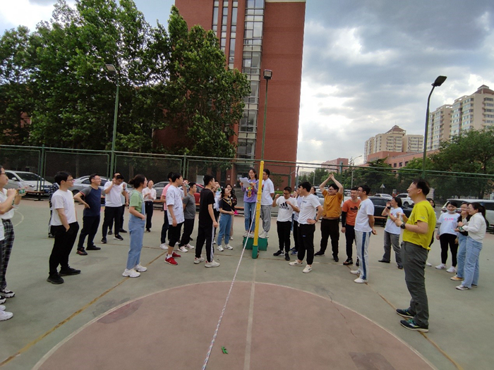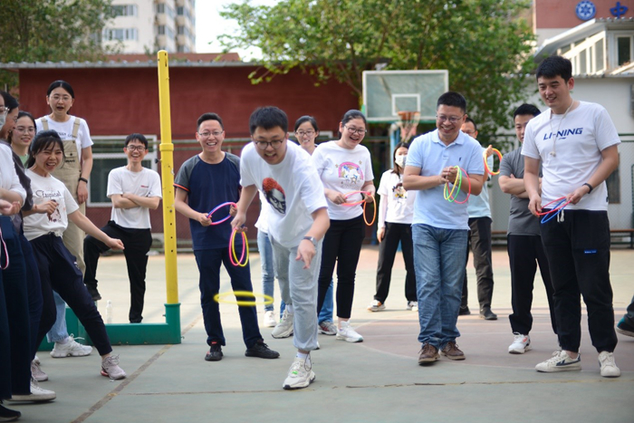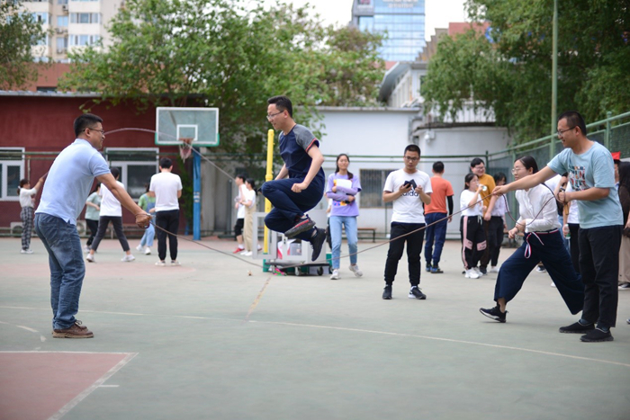 本次交流活动共吸引了49名师生共同参加,大家编为四支队伍,为老师和学生提供了良好的相互交流学习的机会。比赛共分为4个项目进行,分别是跳大绳、毽球对抗、目标套圈和“滚雪球”折返跑。比赛开始前,通过短暂的内部交流,四支队伍为各自队伍都起了有代表性的名字“超玩会战队”、“风云队”、“冠军队”、“学习队”,既鼓舞了团队的士气又增强了团队的凝聚力。