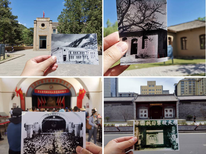 之后,大家来到了杨家岭革命旧址,当年这里曾进行过轰轰烈烈的大生产运动、整风运动。在召开过我党第七次代表大会的大礼堂,支部同志们拿出了大礼堂的老照片,今昔对比,感慨万千,大礼堂依然矗立在原地,而今日中国在我党的带领下已然换了人间。在毛主席曾种过的菜地上,同志们认真辨认着各种蔬菜,想象着在那个物资极其短缺的年代里,广大军民在党中央领导下自己动手丰衣足食的场景,深刻体会到了自力更生艰苦奋斗的延安精神。在参观领导人故居的时候,同志们再次感受到了革命前辈们艰苦朴素的生活,纷纷表示要忆苦思甜,珍惜现有生活。面对此情此景,支部书记王倩同志适时在领导人住过的窑洞里为大家讲解了延安之行的意义,尤其为支部党员着重讲解了以“自力更生、艰苦奋斗、实事求是、全心全意为人民服务”为中心的延安精神的深刻内涵。