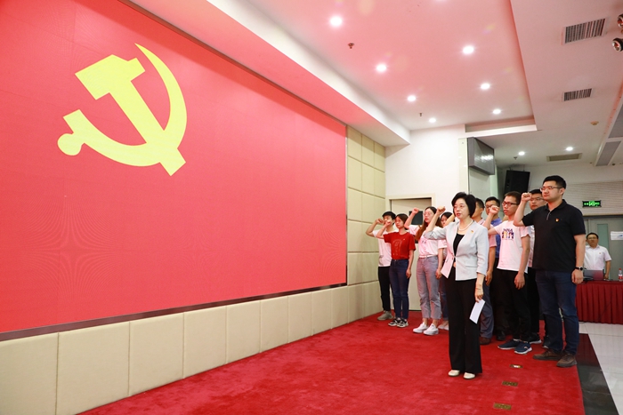 随后进行“光荣在党50周年”纪念章颁发仪式。张丽萍书记向参加主题活动的老党员代表现场颁发了纪念章。“光荣在党50年”纪念章是党中央2021年首次颁发的纪念章,理化所共有60名老党员获得此殊荣。接着,张丽萍书记带领新党员宣誓,在场全体党员重温入党誓词,在建党百年前夕表达了坚定理想信念和科技报国之心的信心和决心。