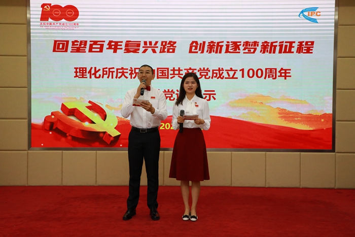 6月25日, 理化所隆重举行庆祝中国共产党成立100周年“回望百年复兴路、创新逐梦新征程”主题活动暨微党课展示。所领导、党委委员、纪委委员,副处以上领导干部,各支部(总支)委员,老党员代表、参加宣誓的新党员,参加微党课展示人员,各支部党员代表100余人出席活动。主题活动由理化所党委副书记刘新建主持。