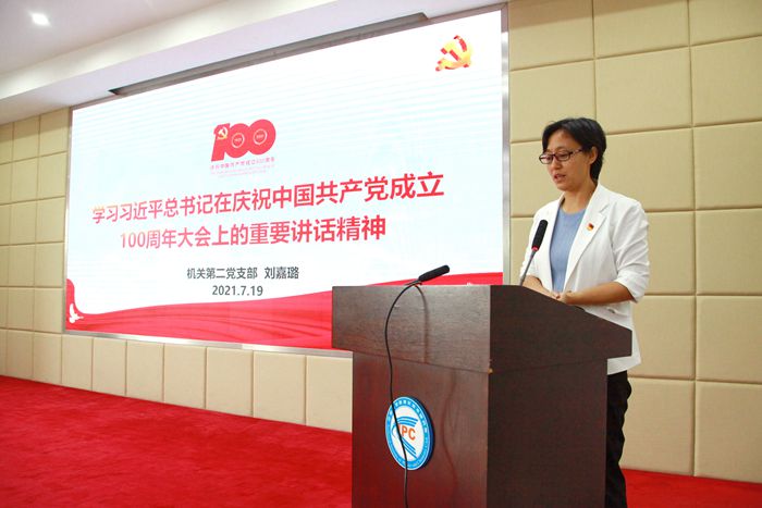 支部宣传委员刘嘉璐做了《习近平总书记在庆祝中国共产党成立100周年大会上的重要讲话精神》的专题党课,带领大家再次共同学习了习近平总书记“七一讲话”。重点介绍了党的百年光辉历程及取得的四个伟大成就、党的伟大建党精神、中华民族伟大复兴的光明前景以及总书记对广大青年和全体中国共产党员的期望。