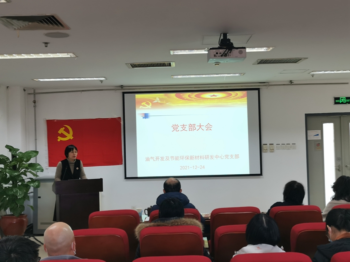 2月24日下午,油气开发及节能环保新材料研发中心党支部召开党员大会,讨论王平同志转正事宜。会议由支部书记赵榆霞主持。