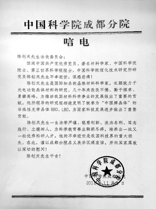 中国科学院成都分院唁电