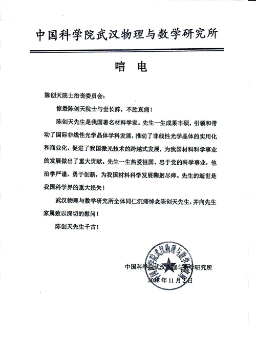 中国科学院武汉物理与数学研究所唁电
