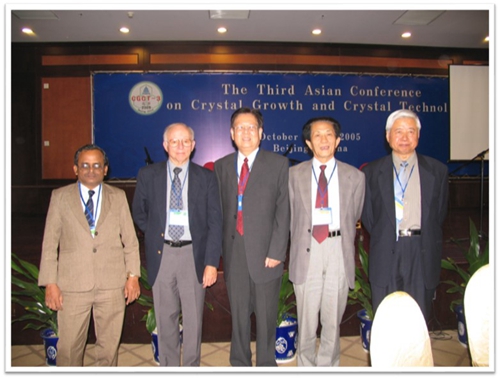 2005年,陈创天院士(左三)与闵乃本院士(右二)...