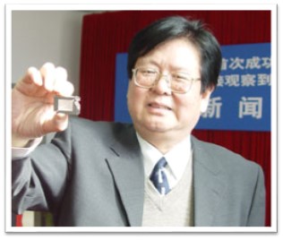 2005年,陈创天在中日重大科技成果新闻发布会上展示KBBF深紫外非线性光学器件