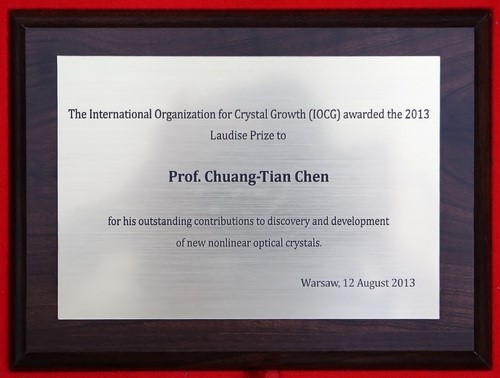 2013年,陈创天获国际晶体生长协会最高奖—Laudise奖