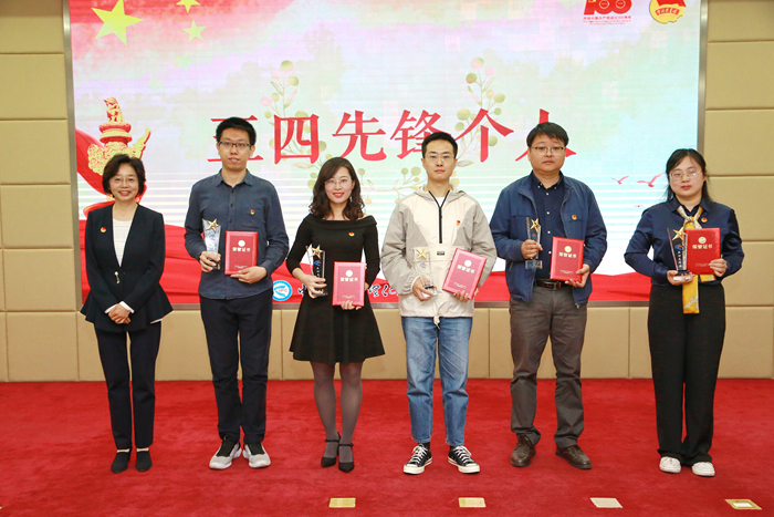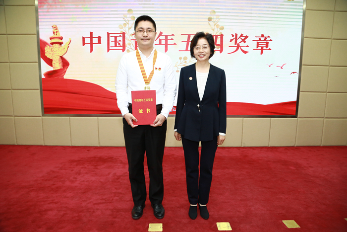 党委书记张丽萍为中国青年五四奖章获得者严开祺颁奖