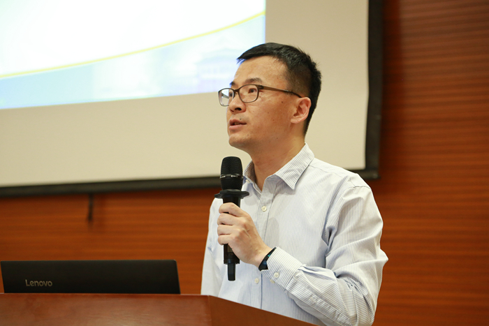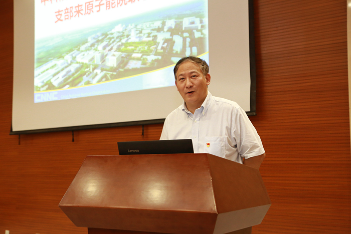 原子能院机关党支部书记孙少飞介绍机关党支部情况