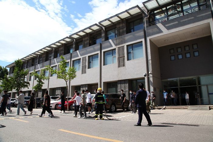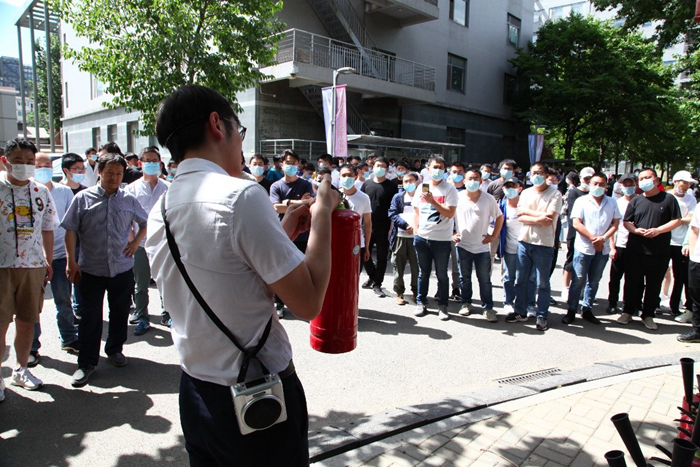 14时20分,随着四号楼内警报声的响起,防火演练正式开始。工作人员触发消防警报,各楼层安全员指挥全体人员,快步弯腰有秩序地疏散逃离演练现场。三分钟之内,所内消防小队赶到现场进行处置。在整个疏散逃离过程中,中心全体人员高度重视、积极行动,利用最短的时间逃离至安全区域,整个过程迅速、有序。疏散至3号楼西侧后,同志们进行消防器材使用培训。现场配备了40个灭火器,设置了多处火源,以达到真实火场灭火实训的效果。消防队同志现场讲解了灭火器的正确操作方法,中心职工及学生相继操作,进行灭火实训。本次消防演练切实提高了中心职工和学生的消防安全责任意识,进一步增强了大家自救的能力,为园区的消防安全提供了可靠的保障。