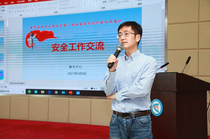 现场演练后,在407会议室进行了安全教育知识培训。会议由晶体与激光党总支书记张申金主持,王雪松副所长应邀出席并致辞。张书记对此次消防安全演练进行了总结,指出此次演练组织有序、准备充分、反应迅速,各部门默契配合,达到了演练的目的与效果,充分体现了激光中心在应对突发事件时的高效组织协调能力。随后,激光中心合成与集成工艺部部长徐健、办公室主任许凤良、济南激光研究院副院长高宏伟、功能管理与控制技术部王兆华同志相继就安全工作进行了交流。激光中心党支部副书记田昌勇表示,激光中心人员较多,希望大家牢固树立以“防”为主的安全意识,防患于未然。