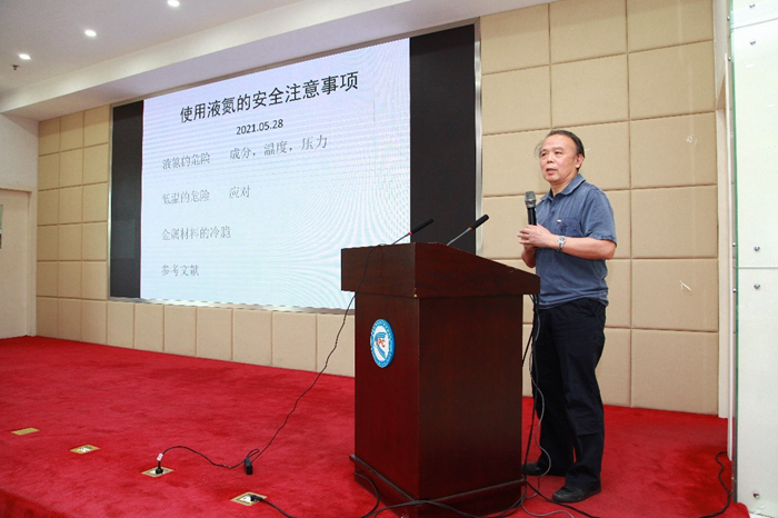 活动特别邀请了液态金属研究中心周一欣研究员进行了低温液氮相关知识的培训,旨在提高大家对于液氮的认识,规范液氮的使用与保存。活动还邀请了全国知名行业专家郑智斌老师,围绕“消除事故隐患,筑牢安全防线”,开展了专题报告,从安全隐患来源、安全隐患预防以及火灾治理等方面展开讨论。