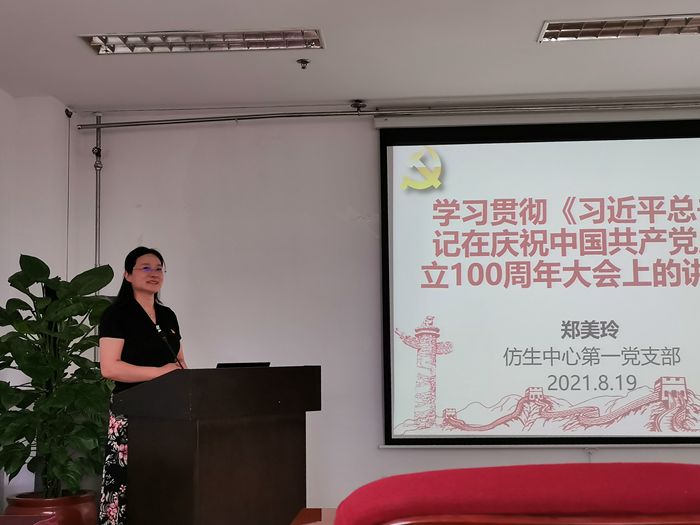 支部书记郑美玲带领同志们深入学习贯彻《习近平总书记在庆祝中国共产党成立100周年大会上的讲话》,重温党的奋斗历程,弘扬伟大建党精神。郑美玲强调,要通过学习贯彻习近平总书记“七一”重要讲话精神,“践行初心,担当使命”。作为一名从事科研工作的党员,我们要爱岗敬业、履职尽责、不懈奋斗,把伟大建党精神继承下去、发扬光大,在新的征程上创造新的辉煌。