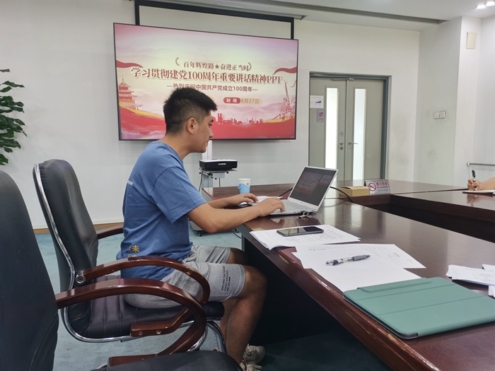 首先,在支部召开党员大会前,支部以党小组为单位学习了习近平总书记“七一”重要讲话精神。在党员大会上,支部组织委员薛小矿以“学习贯彻建党100周年重要讲话精神”为主题,着重介绍了“以史为鉴 开创未来”的思想内涵,强调全体党员应以此次讲话精神为指导,在建党百年的重大历史节点上做到与时俱进、守正创新,活到老、学到老,永葆革命的青春。随后,同志们共同观看了北京大学王久高研究员关于习近平总书记“七一”重要讲话精神的解读视频,从理论学习的角度加深了理解。