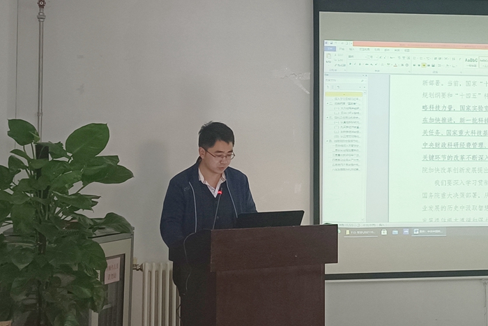 组织委员王丽荣领学了习近平总书记在2021年秋季学期中央党校中青年干部培训班开班式上的讲话精神,她结合习总书记对青年干部提出的一系列重要要求,分析解读了青年科技工作者要以习总书记重要讲话精神为指引,认真践行“坚定理想信念、提高工作能力、锤炼优良作风”,切实做到政治思想上、能力担当上的自律自强,努力成为可堪大用、能担重任的栋梁之才,不辜负党和人民期望和重托。