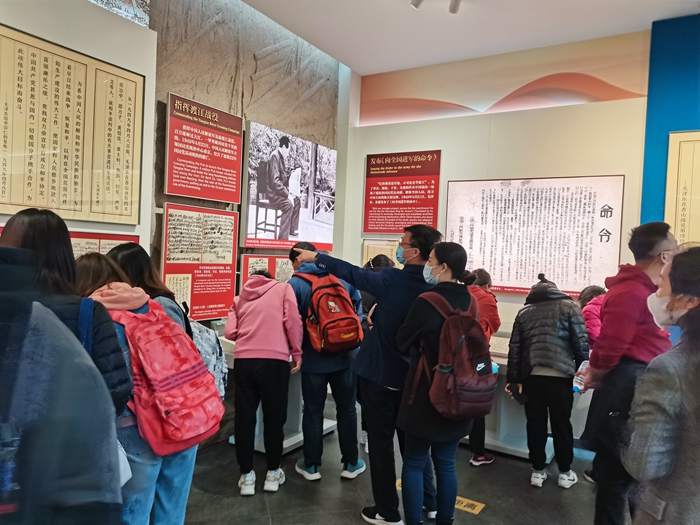 走出双清别墅,大家拾级而上来到 “毛泽东同志在香山”展览馆,这里介绍了从入驻香山至新中国成立这段时间里,毛泽东与中央领导同志共商大计,为新中国奠基的伟大事件。