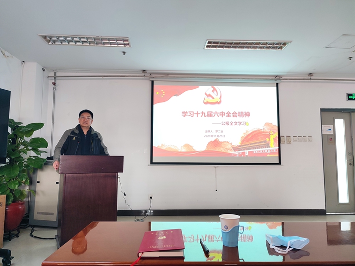 随后,罗二仓副所长带领大家学习十九届六中全会公报,领会全会精神,重点介绍了会议的基本内容、“八个提出”、“五个强调”以及“两个指出”,并结合自身的理解对这些内容作了深入的讲解。罗二仓指出十九届六中全会对党的百年奋斗重大成就和历史经验进行了系统总结,这次全会是在重要历史关头召开的一次具有重大历史意义的会议,鼓舞人心,催人奋进。全体党员同志要深刻领会党的十九届六中全会精神,将学习成果转化到实际工作中,扎实推进各项科研工作,为促进国家科技事业的发展作贡献。