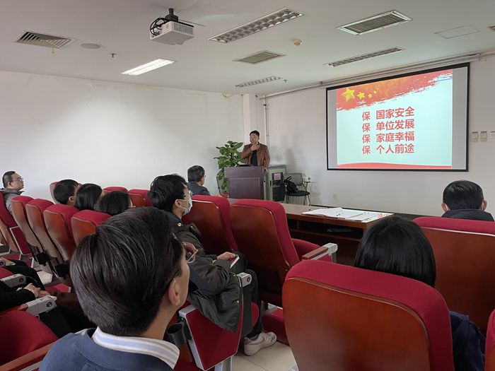 会议特邀保密处高文同副处长为大家作保密知识专项培训。高文同从“什么是保密”“保密责任”“保密法例法规基本要求”“单位保密工作基本情况”及“案例分析”等五个方面做了详细深入讲解,指出保密工作事关国家安全、单位发展、家庭幸福、个人前途,因此要不断加强保密意识,掌握保密知识,落实保密管理要求,防范泄密事件发生。培训结束后大家就各自关心的保密问题展开了交流讨论,表示要牢固树立保密意识,遵守保密管理制度,牢筑保密防线。