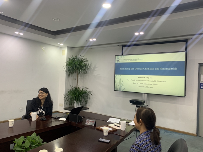5月25日下午,应理化所“未来青年论坛”与工程和生态塑料国家工程研究中心邀请,加拿大工程院院士、多伦多大学颜宁教授来到理化所进行交流,以“Sustainable Bio-Derived Chemicals and Nanomaterials”为题为大家呈现了一场精彩的学术报告。理化所科研人员、博士后和研究生等近50人参会,报告会由理化所王树涛研究员主持。