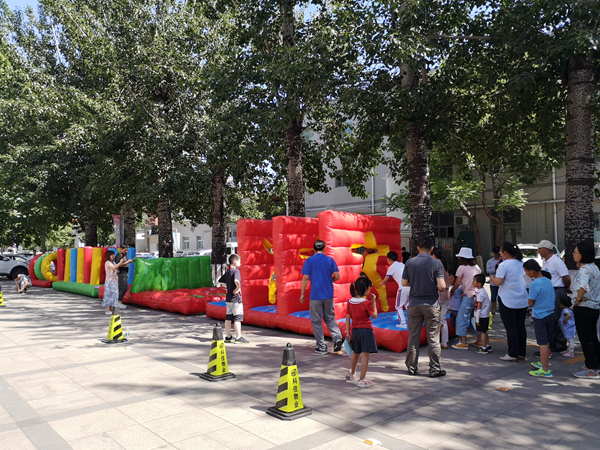 “咔嚓、咔嚓”,随着小朋友和大朋友的笑脸定格在欢乐的大合影上,趣味运动会正式拉开序幕。理化所的1号楼大厅和广场变成了欢乐的海洋,“超级障碍赛”、“充气迷宫”、“趣味100℃”、“俄罗斯方块”4项游戏活动,处处是小朋友们带领着爸爸或妈妈欢乐闯关的身影;科普实验现场,也能看到一张张好奇的面孔和一双双灵活的小手,这些游戏和科学小实验,给孩子们带来了无穷的快乐和遐想。