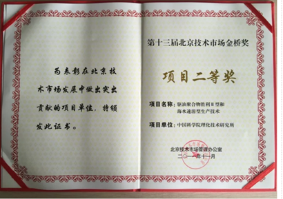 由于取得了这样一些成绩,我们获得了2011年北京市技术市场金桥奖项目二等奖和2014年中国专利优秀奖。