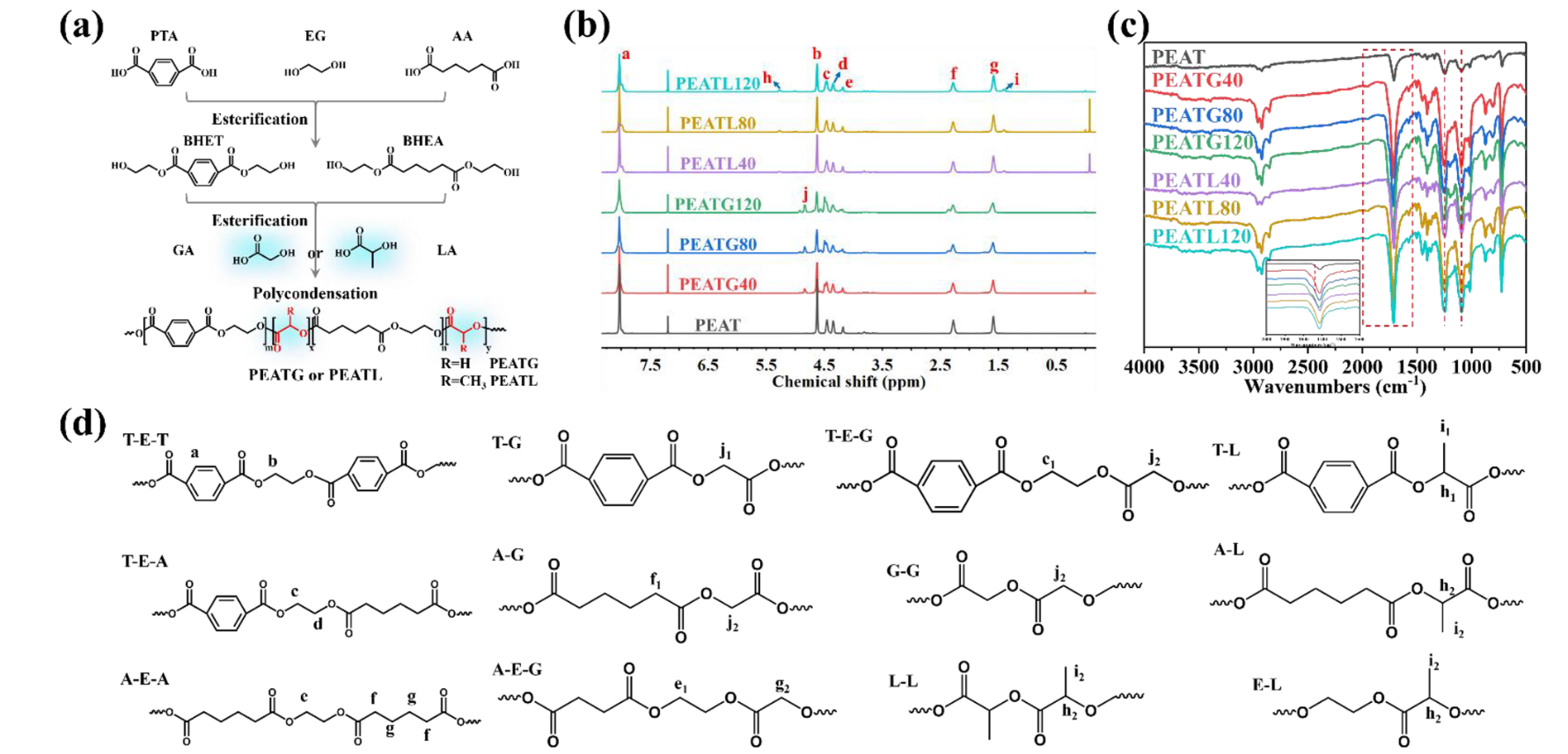 图2. PEATG和PEATL共聚酯的制备和结构表征